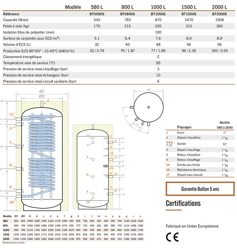 Les ballons tampon de la série BT-S sont utilisés principalement pour une installation en sytème solaire combiné.