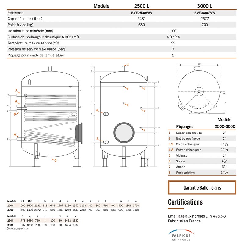 Ballon solaire ECS double échangeur BVE-WW 2500 à 3000