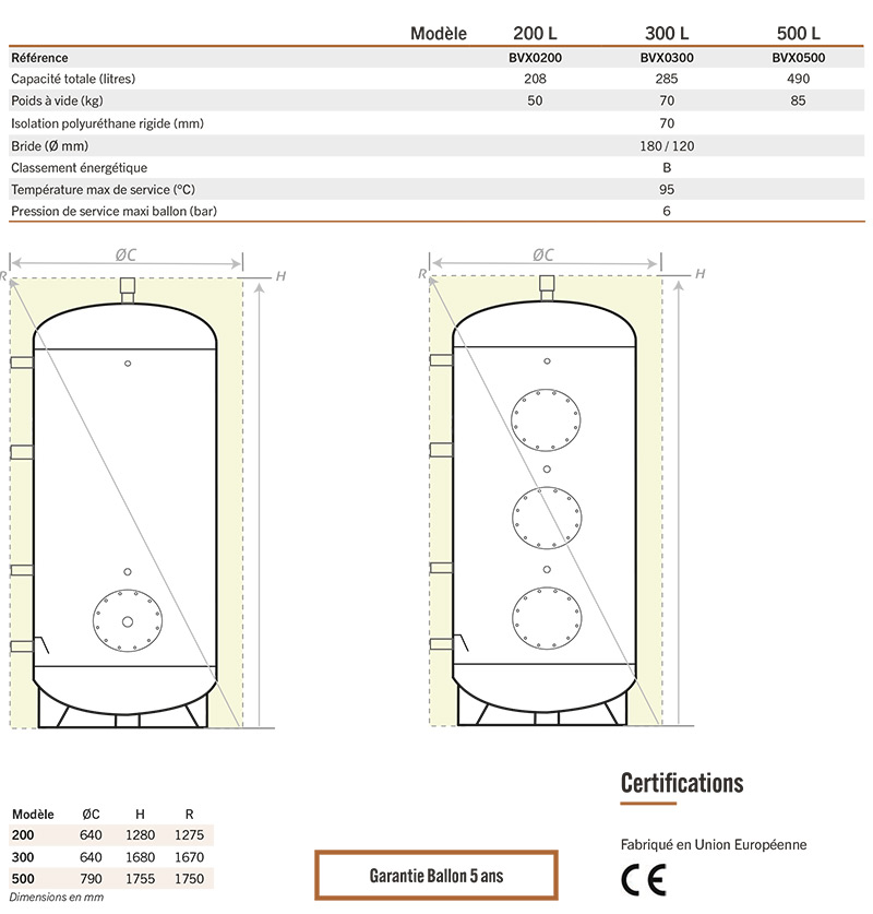 Les ballons de la série BVX sont spécialement conçus pour des installations solaires en circuit direct, sans échangeur.