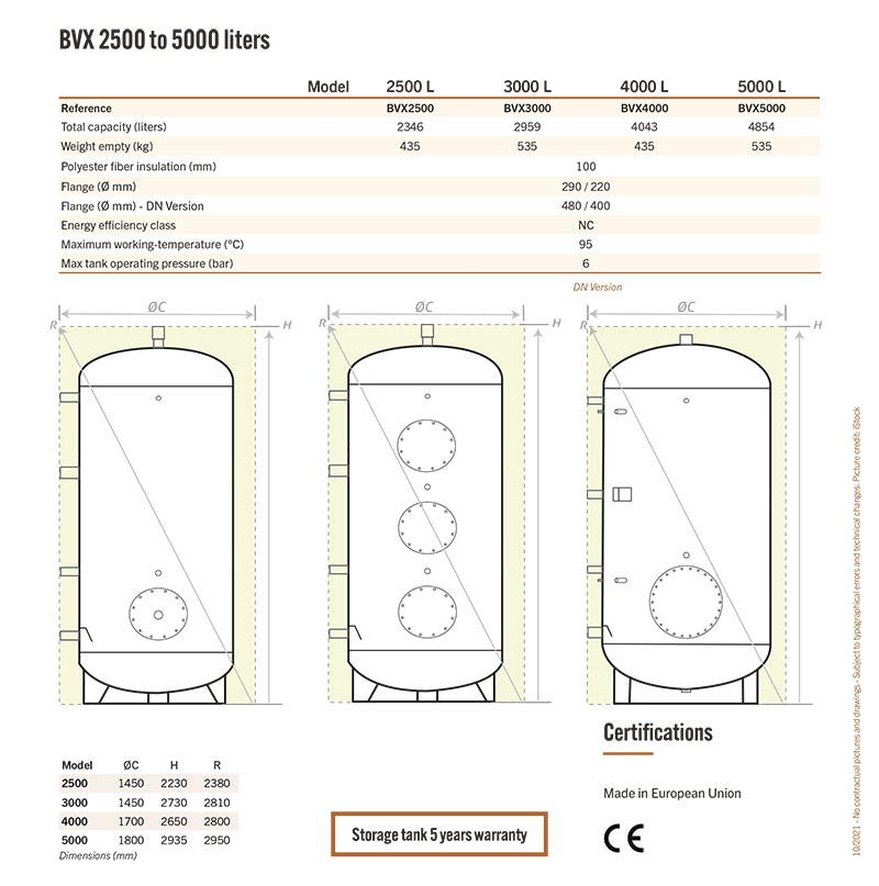 Solar storage tank BVX 2500 to 5000