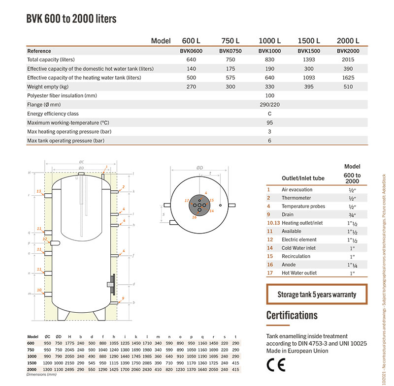 These tanks are used for Solar Energy Combined Systems (SECS), combining the production of domestic hot water and heating.
