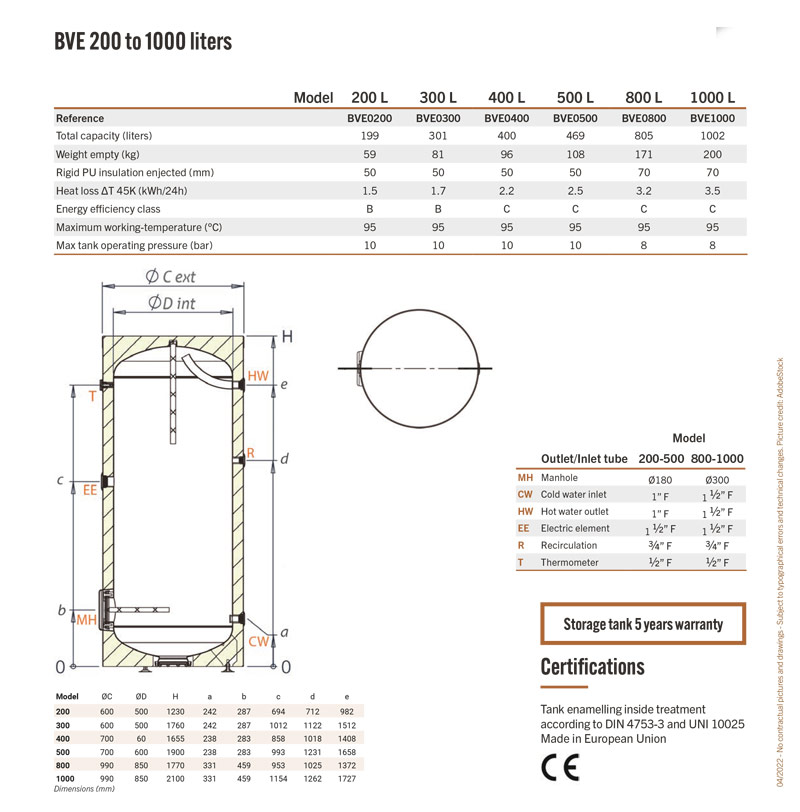 The BVE series tanks are specially designed for direct circuit solar systems, without heat exchanger.