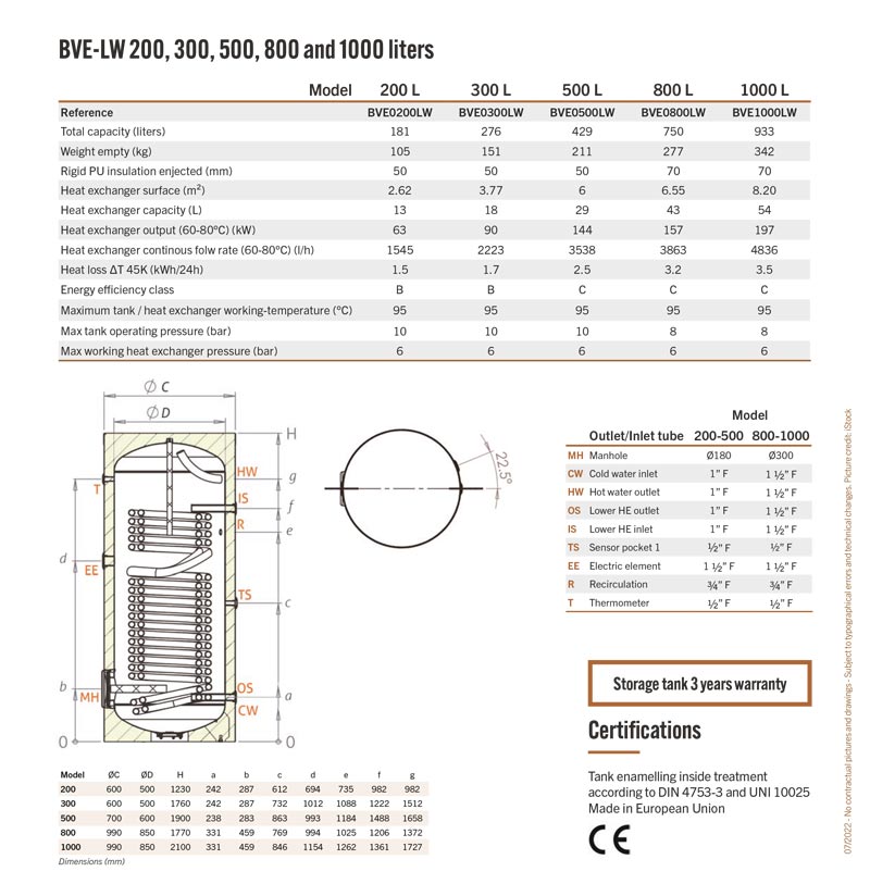 The BVE-LW series tanks comes with an enamelled tank and a large heat exchanger surface. They are suitable for heat pump applications.