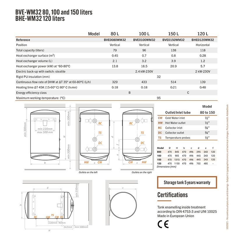 The BVE and BHE – WM series tanks are specially designed for indirect circuit solar systems with heat exchanger.