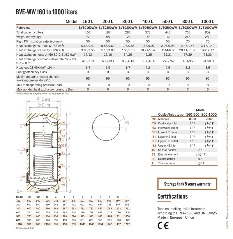 The BVE-WW series tanks are specially designed for primary circuit solar systems. They are equipped with two heat exchangers.