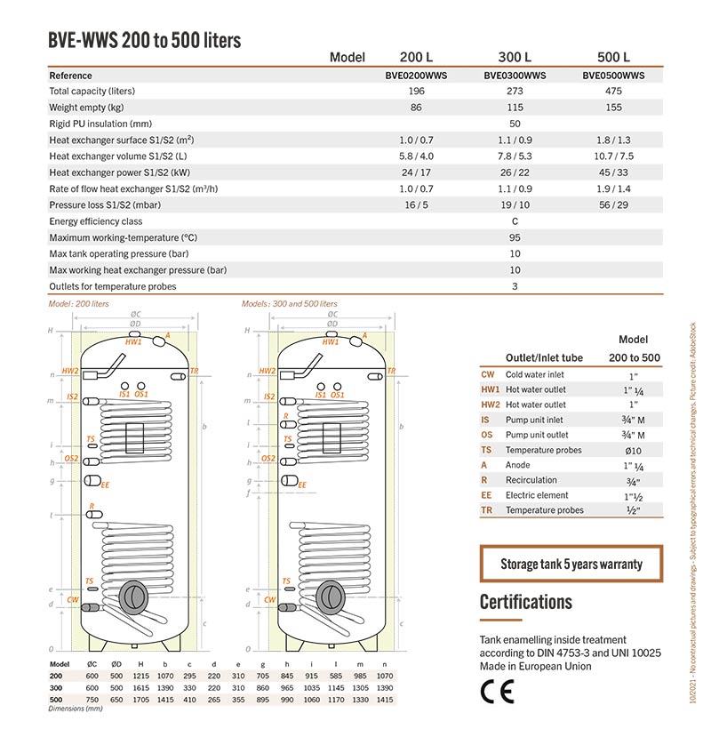 The tank and heat exchanger are made of enamelled steel.