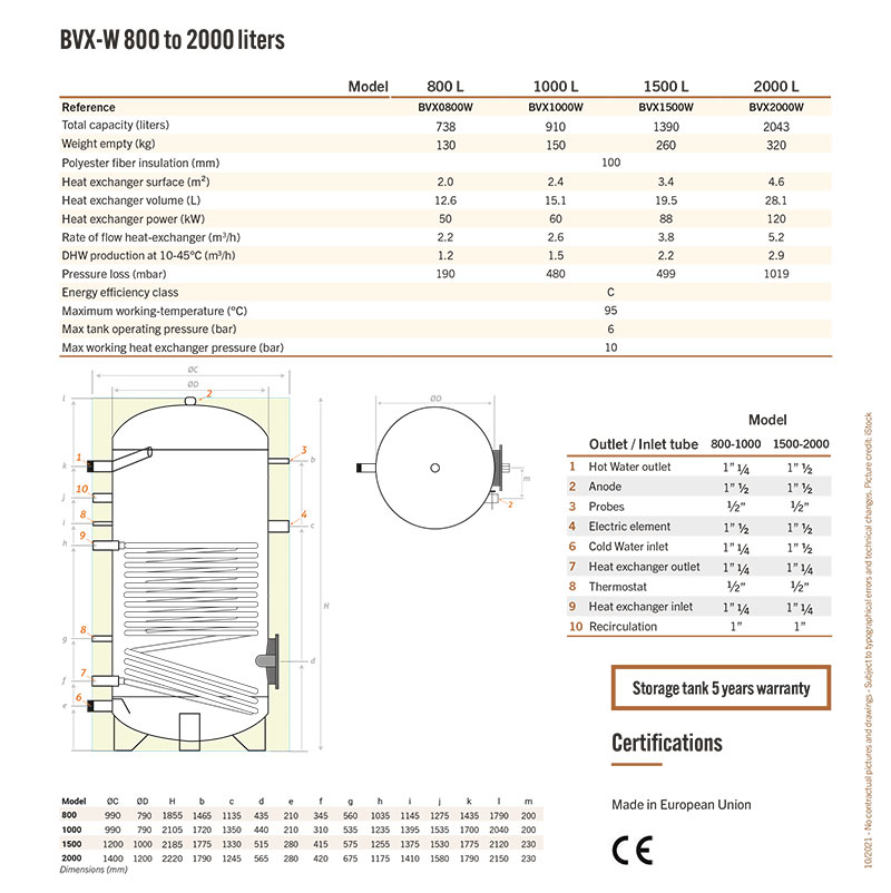 The BVX-W series tanks are specially designed for primary circuit solar systems. They are equipped with a heat exchanger.
