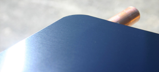 Les absorbeurs des capteurs Syrius sont en aluminium traités avec un revêtement sélectif (Alanod) et les tubes de cuivre sont soudés au laser à l’arrière de l’absorbeur.